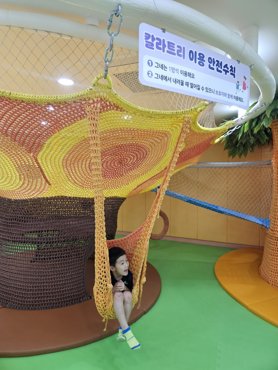 2호점의 특징은 사진에서 보다시피, 그물로 만들어져있는 점핑, 그네, 놀이존이다.
