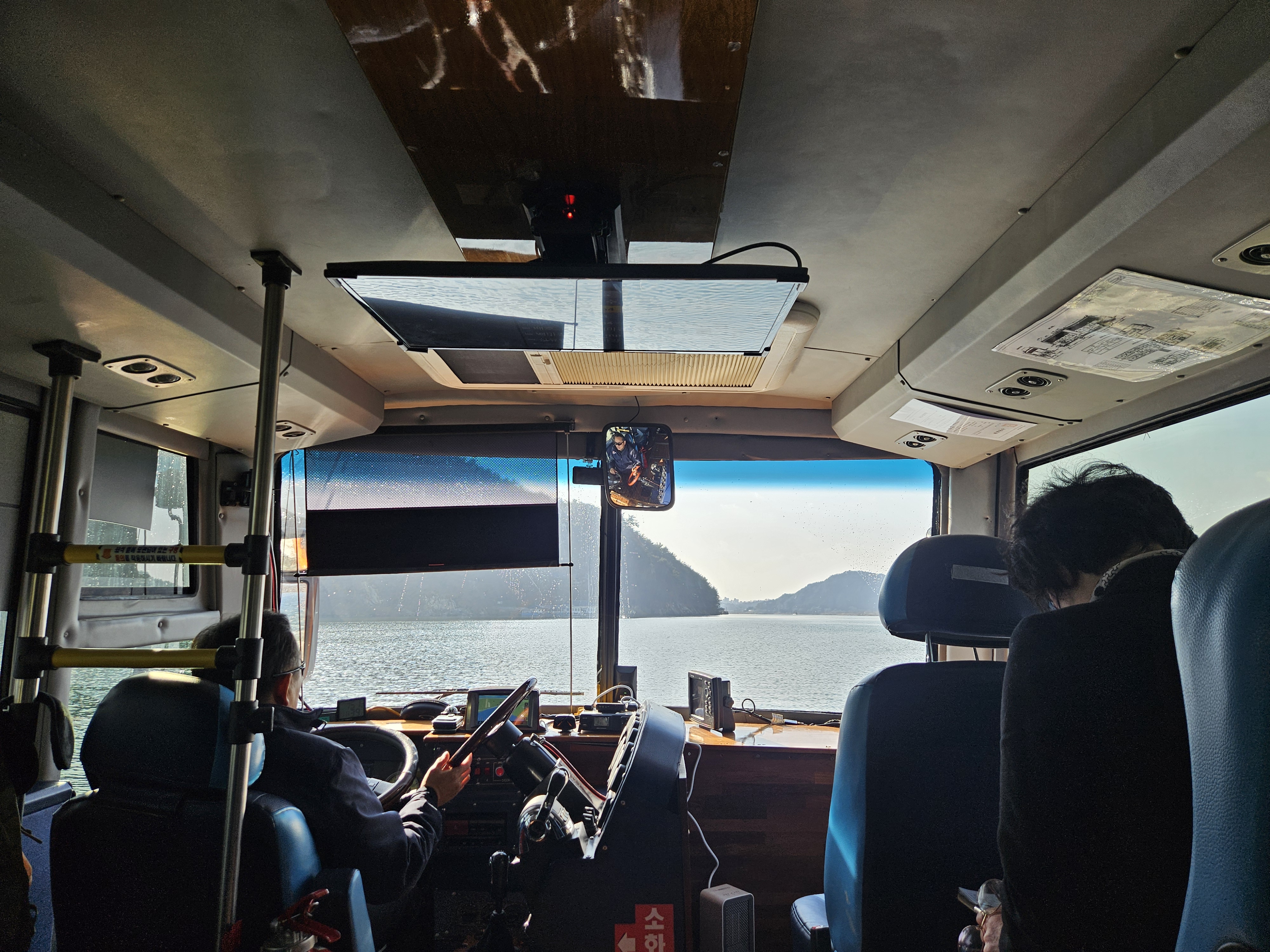 저희는 맨 앞자리 앉았는데요. 앞자리가 좋았던 건, 기사님이 핸들을 두 개로 운전( 도로운전용, 물에서 운전)하시는데