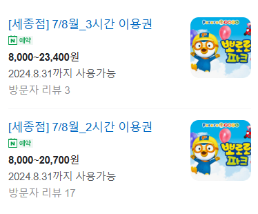 뽀로로파크 세종점 추천 연령, 추천 시간 팁