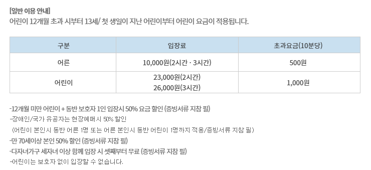 - 2시간 이용권일 경우: 11시 30분 입장 or 16시 30분 추천