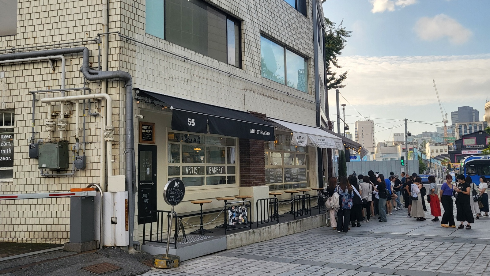 저희는 야외 테라스 자리였는데 살짝 보이시겠지만 바로 앞에 줄 서있는 사람들 뷰입니다......