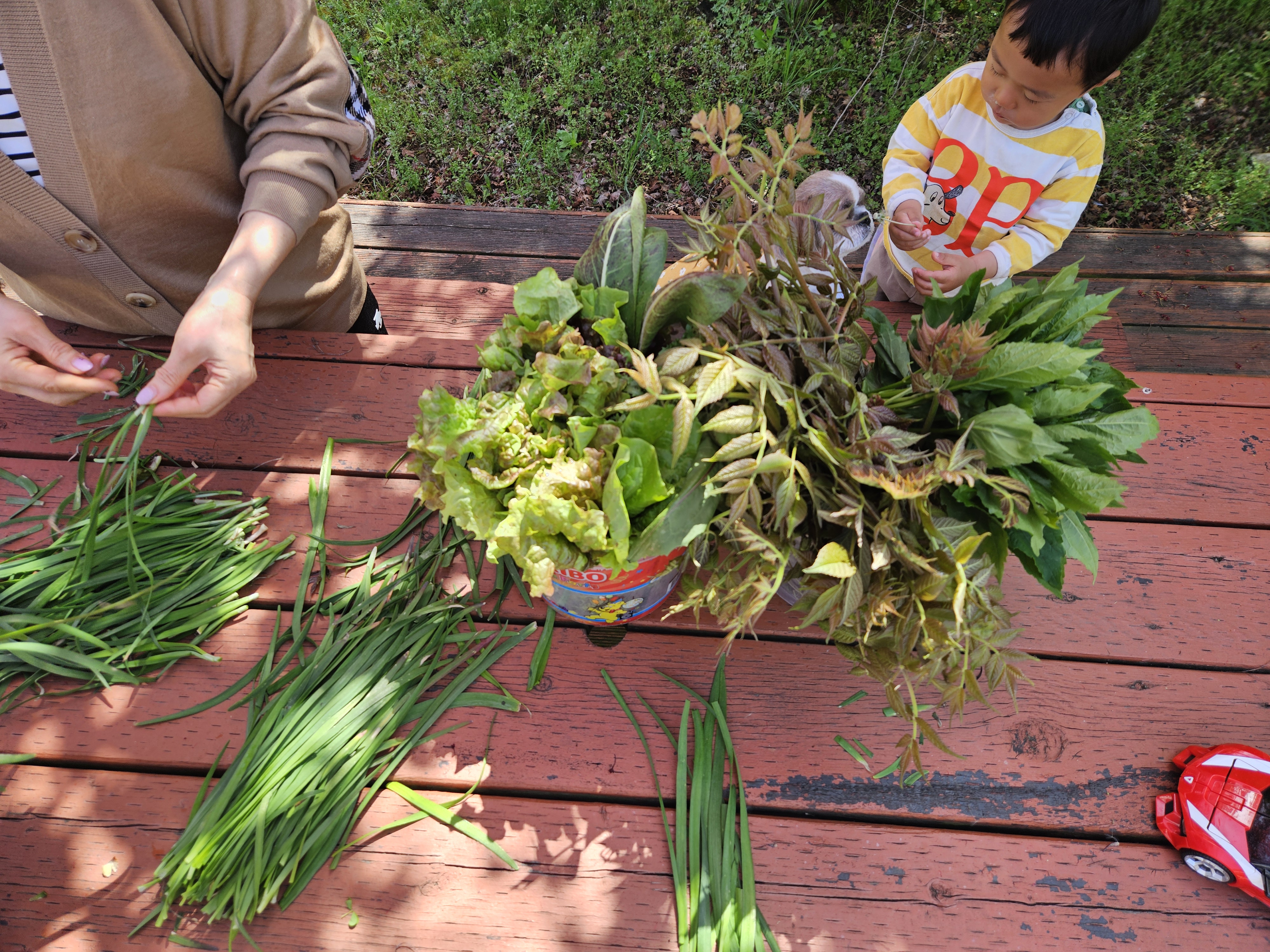 이수는 장난감을 그리워하기는 커녕, 자연에서 상상놀이를 시작했다.
