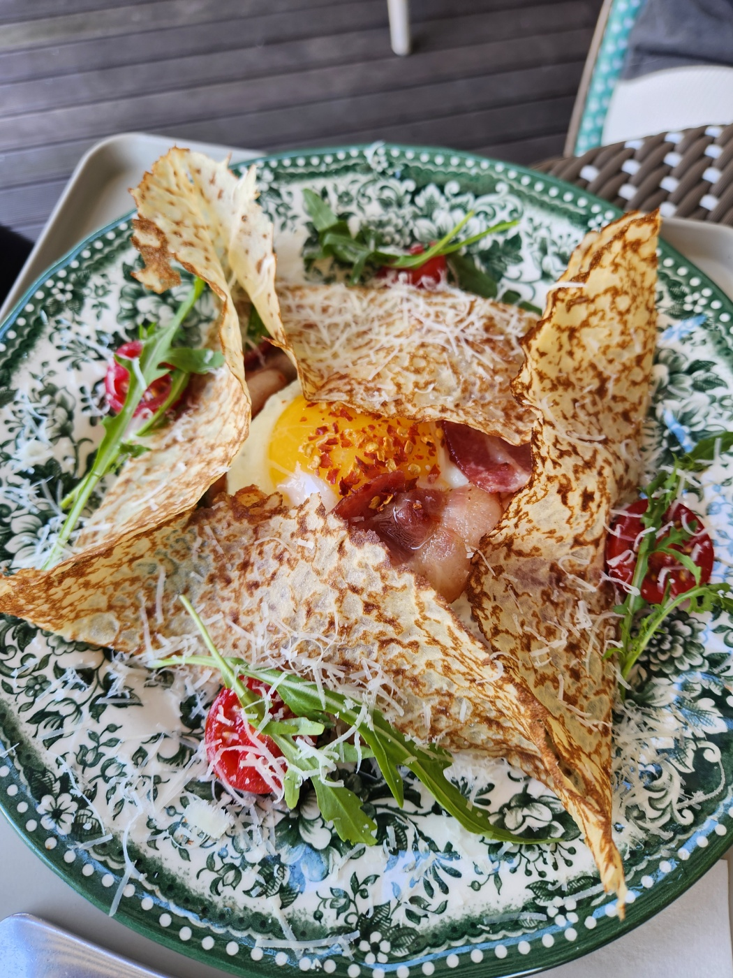 브런치 메뉴로는 오일 파스타와 베이컨 칼레트 를 추천합니다.